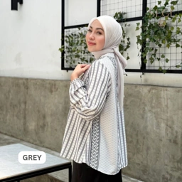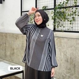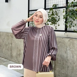 Blouse motif monogram SEGE yang modern dan elegan Detail lengan balon memberi sentuhan feminin yang manis MUST HAVE!