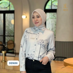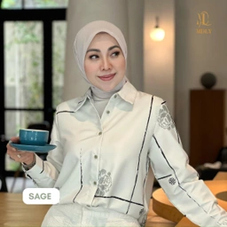 Atasan bermotif ilustratif dengan sentuhan floral yang rapi, memberikan tampilan clean dan modern, serta mudah dipadukan untuk aktivitas sehari-hari.