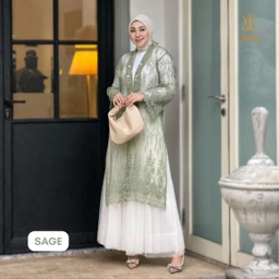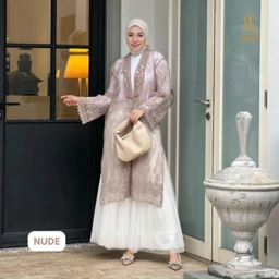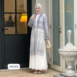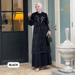 Outer dengan detail embroidery, dilengkapi sentuhan bead yang memberi efek berkilau lembut.