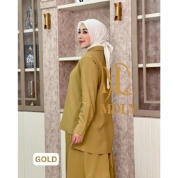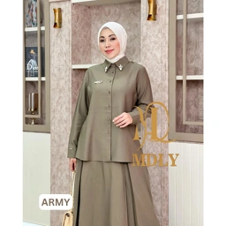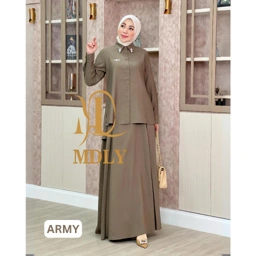 Daily one set favorit kamu! Tampilannya sungguh timeless. Memiliki cuttingan asimetris dengan aksen 2 button di sisi kanan kiri kemeja, beads di kerah, dan ploi/lipatan di sisi kanan kiri rok, yang bikin jadi lebih nyaman dan lebar