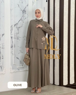 One set kemeja dan rok kekinian berwarna senada dengan aksen mewah signature floral embroidery . Memiliki design hidden button dan jahitan yang rapi sehingga looksnya semakin chic dan elegant