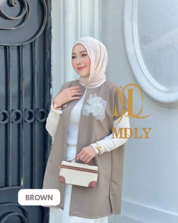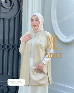 Vest dengan potongan clean dan modern. Terdapat detail bunga 3D yang tampak standout Cocok untuk kamu yang suka layering tapi tetap ingin tampil ringan dan elegan