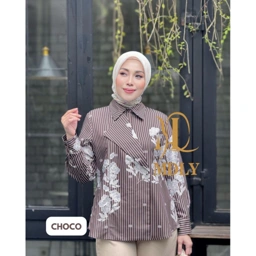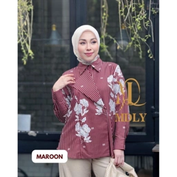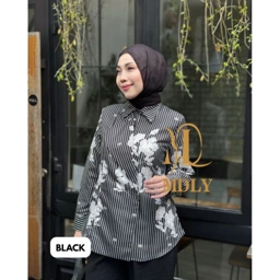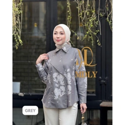 Kemeja stripes dengan pattern floral monogram MDLY Memiliki cuttingan yang asimetri bikin look makin special