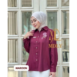 Kemeja elegan dengan signature bordir bunga dan kancing eksklusif signature MDLY Potongannya clean dengan bahan yang nyaman dipakai seharian!