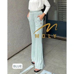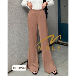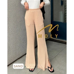 Celana bahan knit pleats yang super nyaman, cuttingannya flare dengan detail slit di bagian samping .Nyaman untuk berbagai aktivitas semi formal dengan bahan yang stretchy