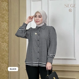 Kemeja motif monogram dengan detail list yang memberi sentuhan modern chic Looksnya elegan dengan potongan loose fit, cocok untuk tampilan formal & casual!