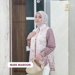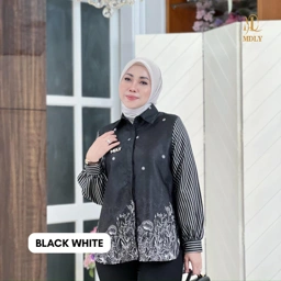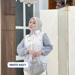Atasan kombinasi motif stripes dan floral dengan sentuhan monogram yang elegan.