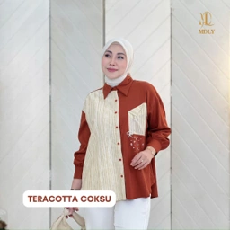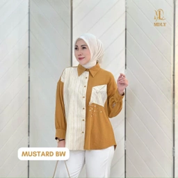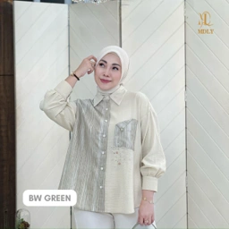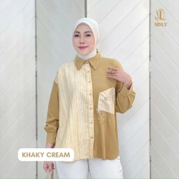 Kemeja dua kombinasi polos dan stripes dengan detail beads eksklusif yang manis ✨
