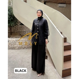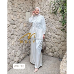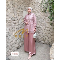 One set premium dengan brukat dan silk fabric Memiliki aksen ruffled di bagian pinggang, classy button, dan lengan yang blow. Cantik untuk kondangan atau lebaran! Wajib punya!!