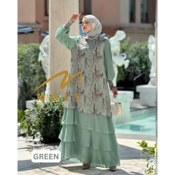 Dress dengan konsep two tone dan layering yang menampilkan siluet indah Detail lengan balon dengan shirring cuff. Cocok untuk daily, kondangan, pengajian, hingga Raya!