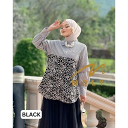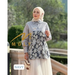 Daily stripes shirt dengan floral embroidery dan aksen lipat di lengan yang menciptakan tampilan anggun dan chic Cocok untuk semua aktivitas kamu!