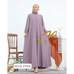 Casual & simple dress untuk pengajian dan daily wear! Detail stand collar, puff bahu, dan tangan yang elastis. Bahannya flowy, ringan, adem, dan lembut banget