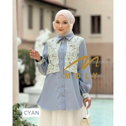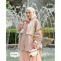 Shirt manis dengan kombinasi embroidery pada mini vest dan cuff Paduan warnanya cantik dan kalem, cocok untuk setiap aktivitas kamu!