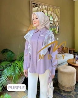 Casual shirt dengan aksen syal kekinian. Looksnya cocok banget dipakai sehari-hari Dijamin nyaman karena bahannya yang adem