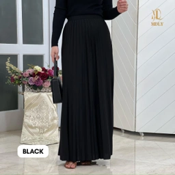 Skirt dengan desain pleats yang rapi dan flowy, memberi siluet elegan saat dikenakan. Potongannya nyaman, ringan, dan mudah dipadukan dengan berbagai atasan ✨