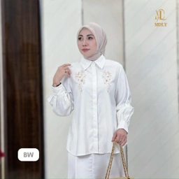 Atasan dengan desain clean dan siluet elegan, dihiasi detail embroidery floral kombinasi beads yang memberi sentuhan mewah. Cutting-nya nyaman dipakai, dengan tampilan rapi dan modern ✨