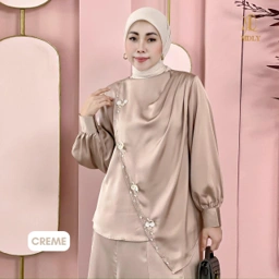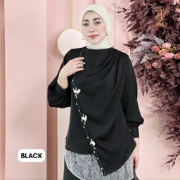 Blouse dengan desain drapery elegan yang memberikan siluet anggun dan flowy saat dipakai. Dilengkapi aksen beads yang mempercantik tampilan serta cutting asimetris yang memberi sentuhan modern dan unik ✨