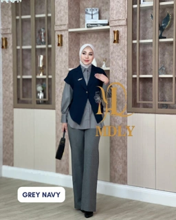Set kemeja dan vest dengan model yang super elegan dan kekinian 💞 Cuttingannya terinspirasi dari keindahan kepak sayap kupu yang dipercantik dengan aksen bordir signature MDLY 🦋