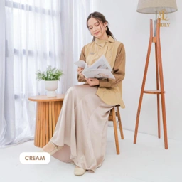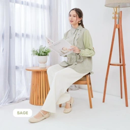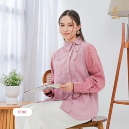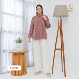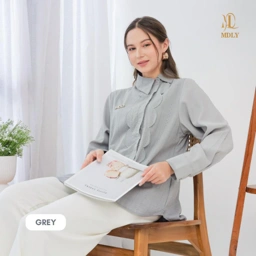 Atasan dengan siluet loose yang jatuh rapi, memberikan kesan anggun tanpa effort. Dilengkapi detail scallop di bagian depan yang menjadi statement lembut dan feminin. Cutting nyaman dengan lengan yang pas, cocok untuk tampilan sehari-hari yang tetap terlihat polished dan refined.